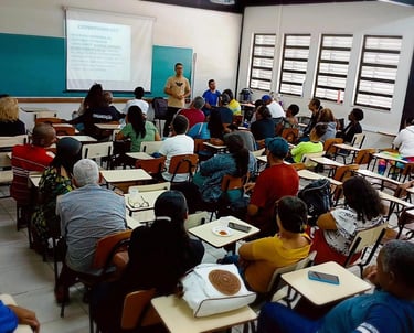 Cooperativa Reciclando para Viver entende que a reciclagem vai muito além do trabalho com os materiais: ela é instrumento de conhecimento, autonomia e cidadania. Por isso, investimos na formação contínua de catadoras e catadores, fortalecendo a organização coletiva e a valorização da categoria.