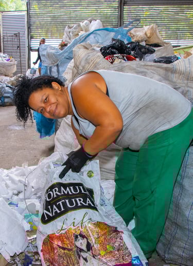 Atuamos para fortalecer a economia solidária, reduzir o impacto ambiental dos resíduos, criar oportunidades para quem vive da reciclagem, incentivar o respeito e a visibilidade dos catadores na sociedade, construir um futuro sustentável com justiça social.